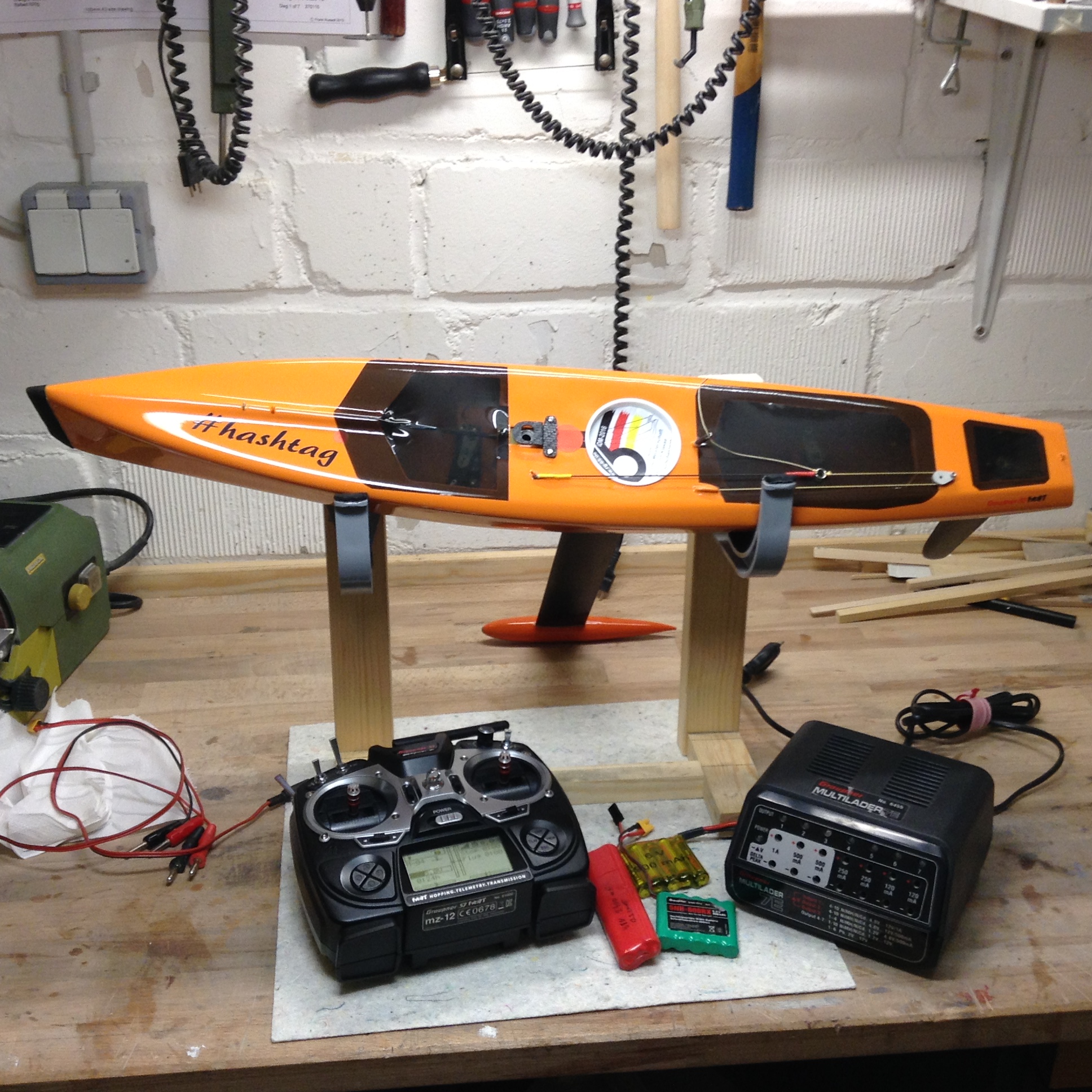 Das Boot ist Kpl mit A u. B-Rigg inkl. zwei TX und Rx Akku`s, Ladegerät und Fernsteuerung,