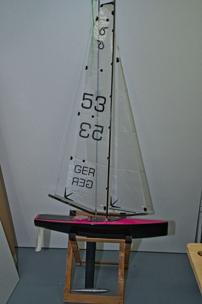 mit zwei Riggs (A+B) und Servos, aber ohne Akku und Empfänger. Das Boot ist viel gesegelt worden und hat Gebrauchsspuren. Es ist nach heutigen Begriffen kein Spitzenboot mehr, aber noch immer ein solides Trainingsboot. Als Zugabe gibt es auf Wunsch eine reparaturbedürftige No.3 Mk I ohne Servos dazu und gegen geringen Aufpreis die Form.
