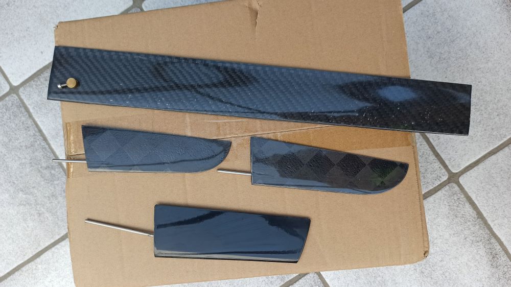 1 CFK-Finne nicht angepasst inkl. Messingscheibe zur Befestigung.