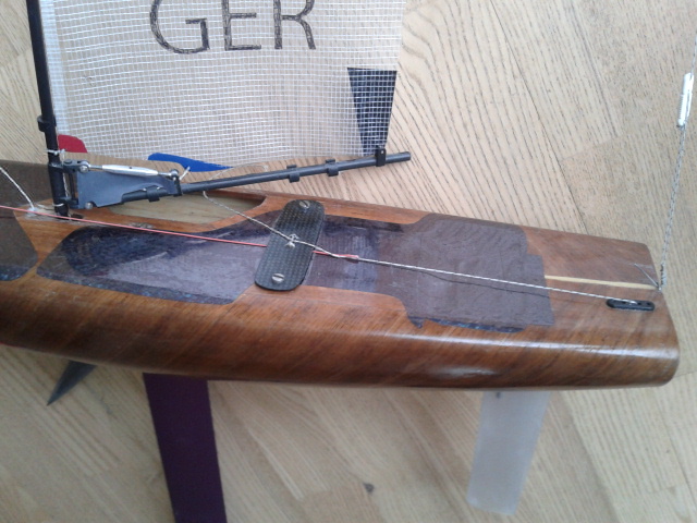 konstruktion aus balsa mit nussbaum formverleimt und teilweise glasverstärkt. zwei riggs, zwei kiele mit prothman bomben, zwei akkupacks, segelverstellservo und ruderservo eingebaut. alles stand jetzt seit einiger zeit. empfänger und sender behalte ich. zustand siehe bilder. am bug ist ein kleiner kinken, aber nichts dramatisches. vb 230,-. standort kiel.