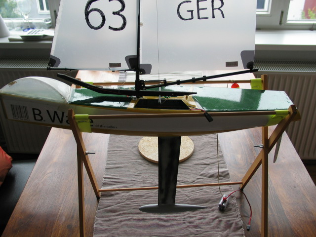 Durch einige Modifizierungen (Wavepiercer auf dem Bug, 50 Gramm Blei im Heck und 550 Gramm Blei unterm Kiel anstatt der normalen 450 Gramm) habe ich auch einige 2. und 3. Plätze bei Starkwindregatten eingefahren, die eigentlich Domäne bleibt aber eindeutig Leichtwind.