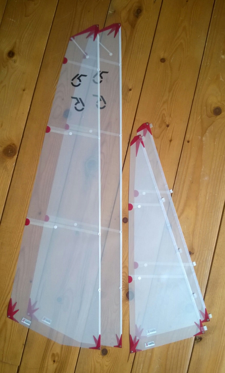 ich biete zwei Segelsätze für das B-Rigg zum Verkauf an.