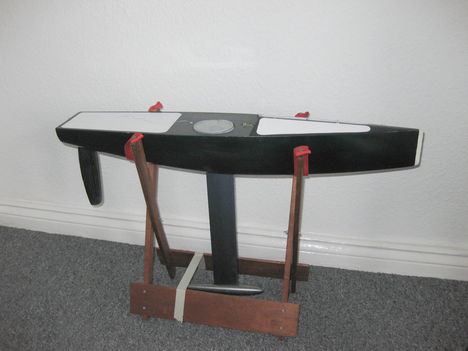Aufgaben für den neuen Eigner: Rigg besorgen und anpassen, RC-Einbau, und ein paar neue Distanzstückchen zur Sicherung des Kiels schnitzen, z.B. aus 3mm Airex (kann ich beilegen wenn gewünscht).