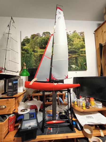 Es ist ein Wettbewerb fähigen boot das wiegt segelbereit 1010g. Mit ein Rumpf Gewicht von nur 85g
