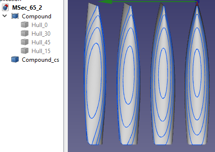 Um die Unterwasserform mittels WL-Rissen bei Krängung beurteilen zu können,