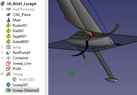 Mechanisch dürfte der eingeklebte Kielkasten als unmittelbare Verbindung zwischen Mast und Kiel relativ steif sein. Der Slicer sagt, dass die Struktur bei 15% Infill und 1mm Wand so um die 25g wiegen dürfte. Wahrscheinlich sind solche Dinge auch schon anderswo und früher angedacht worden.
