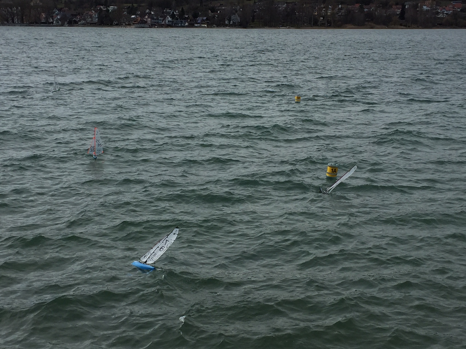 Der RG-65 WinterCup ist entschieden12 Knoten und Böen mit Spitzen von 21 Knoten, dazu leichter Regen und 8 Grad. Der echte Abschluss um RCSTU Winter Cup 2016/17 und wahrlich nichts für "Weicheier"! Fünf Teilnehmer fanden sich am Start ein und nicht ganz zufällig waren es auch die Segler, welche in der Zwischenrangliste die oberen Ränge eingenommen hatten. 7 spannenden Läufe beanspruchten Mann und Technik aufs Äusserste. Nur kurze Kaffeepausen und mal ein Sandwich ... den wir wollten segeln.