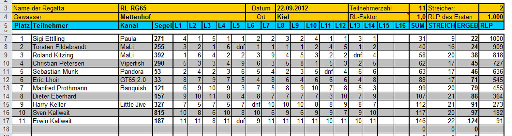 Ergebnis RL Kiel Mettenhof 22.9.2012
