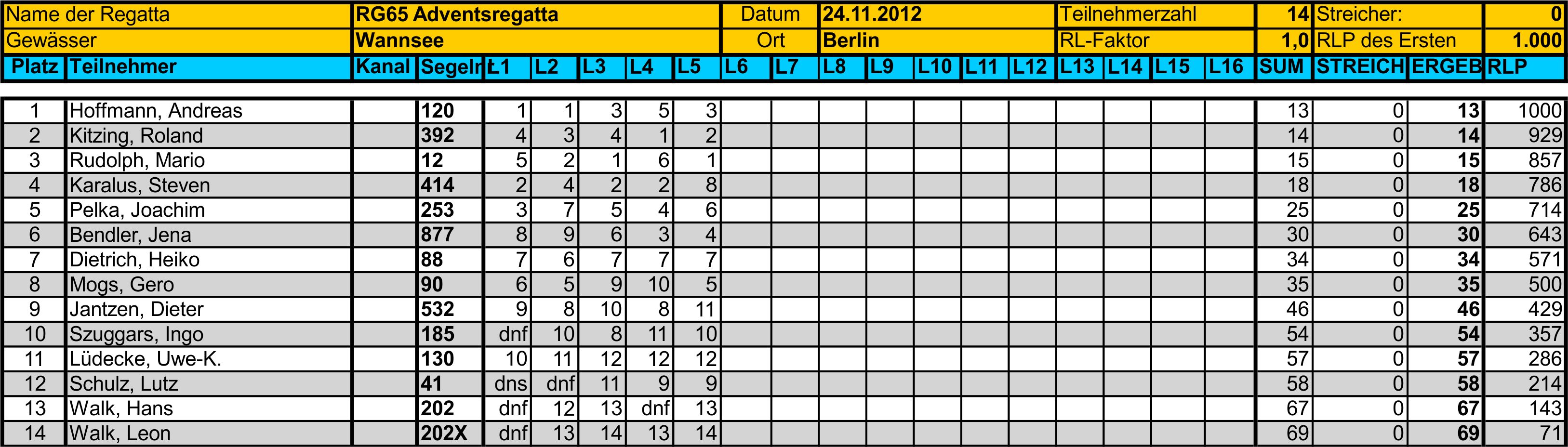 Adventsregatta Berlin, 24.11.2012