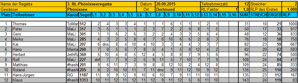 wie schon vor Ort elektronisch errechnet, und verkündet, hier das offizielle Endergebnis der Regatta: