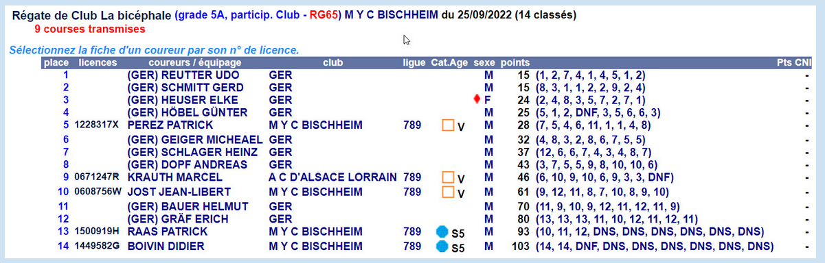Ergebnis 25.09.2022 in Bischheim / Frankreich