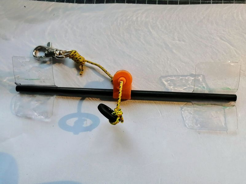 Das Teil besteht nur aus drei Teilen, lässt sich relativ einfach nähen und dürfte seinen Zweck erfüllen. Und falls es jemand nachbauen möchte hier eine detailliertere Beschreibung und zum Download die .stl-Dateien für den Durchlass und die Befestigung der Schnur.