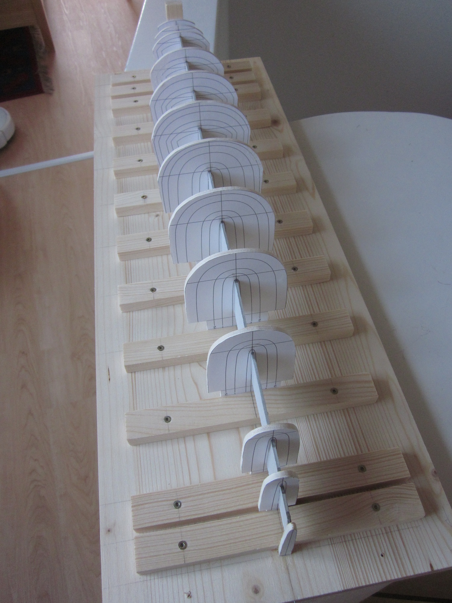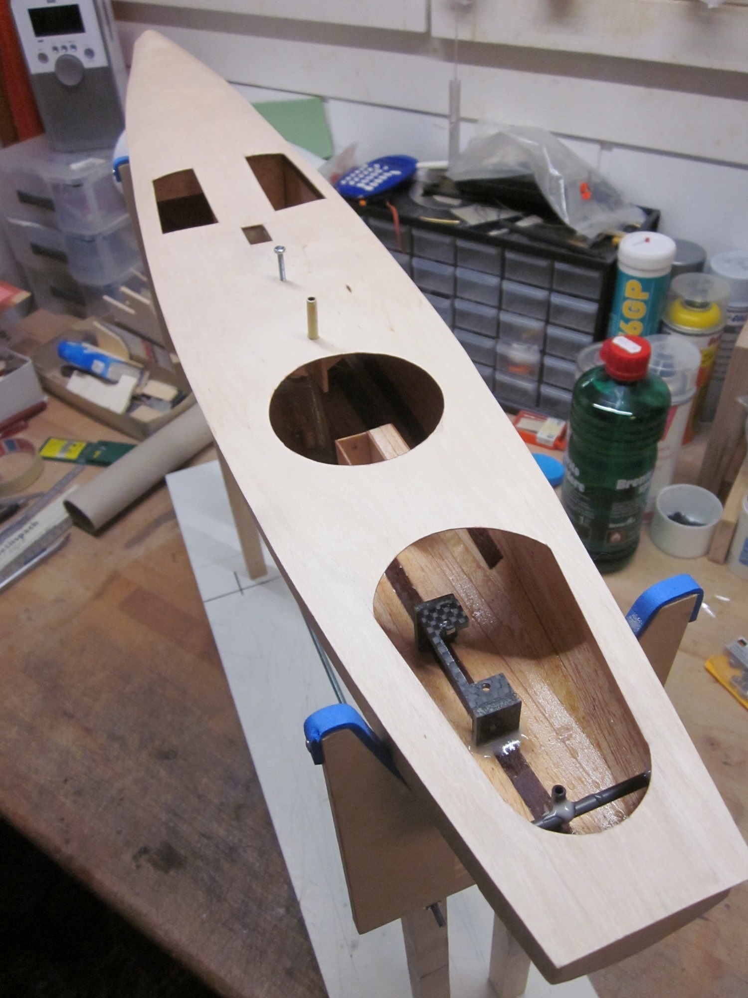Zum einfacheren Bau des vorderen Decksteil habe ich wieder 3 Spanten eingebaut. Ich nehme diese kleine Gewichtszunahme dafür gerne in Kauf.