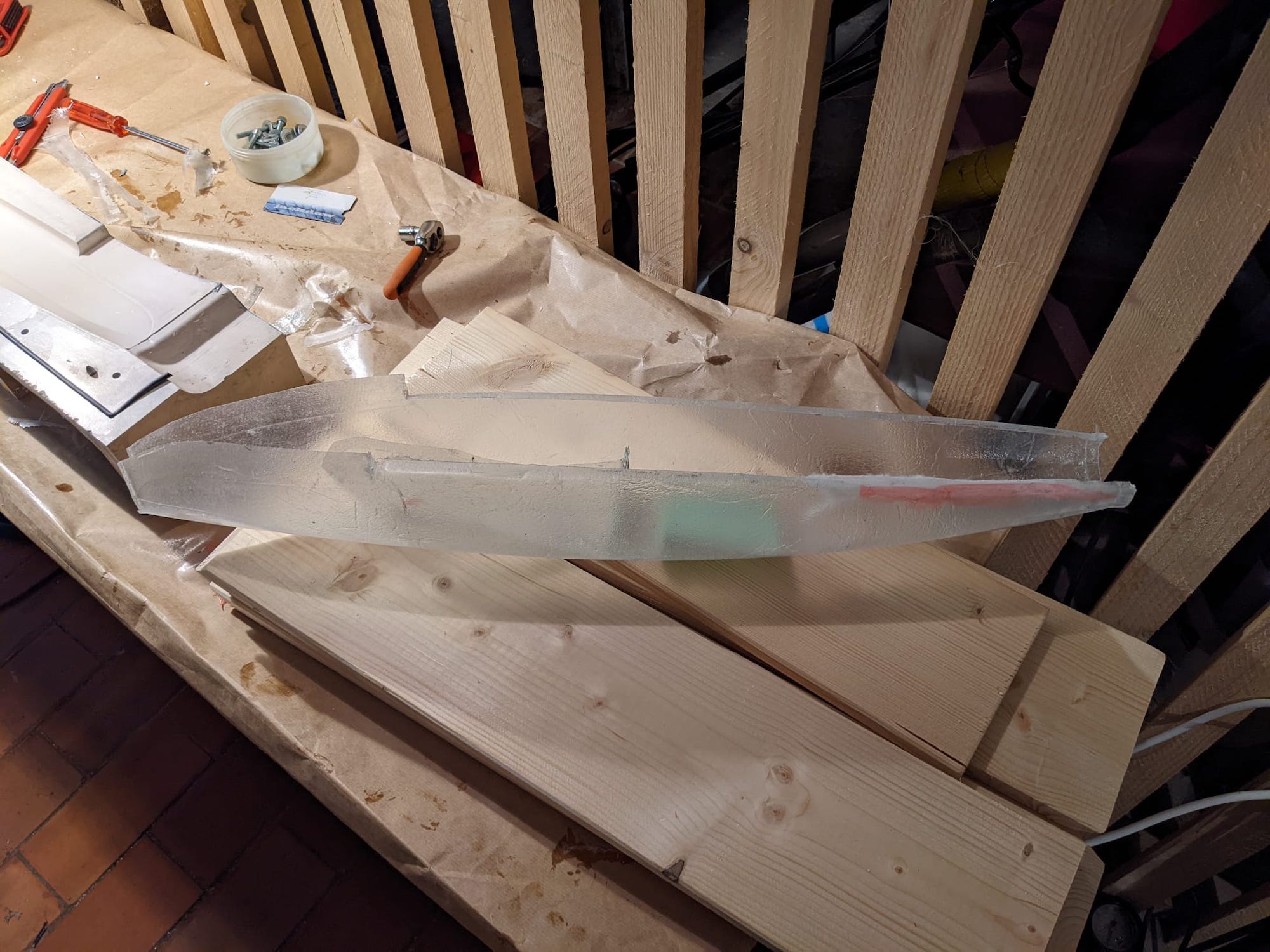 Jedenfalls werde ich im Sommer noch einen zweiten Rumpf laminieren. Da ist bei meiner Baunummer 1 noch einiges suboptimal, auch das Gewicht! Parallel habe ich hier noch einen Nuraghe Rumpf den ich modifizieren will. Ich werde dem Nuraghe Rumpf wohl eine Bug Haube verpassen, ähnlich wie bei der Nuragica und dabei den Rumpf ganz wenig spreizen um mehr Volumen zu kreieren. Gleichzeitig möchte ich am Heck die eingeknickten Seiten ein wenig abschwächen und senkrechter machen.