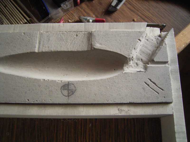 In die beiden Formhälften schnitzte ich dann mit einem Cuttermesser die Luftpfeifen und den Eingusstümpel, welcher auch gleichzietig als Speißer dienen sollte, hinein.