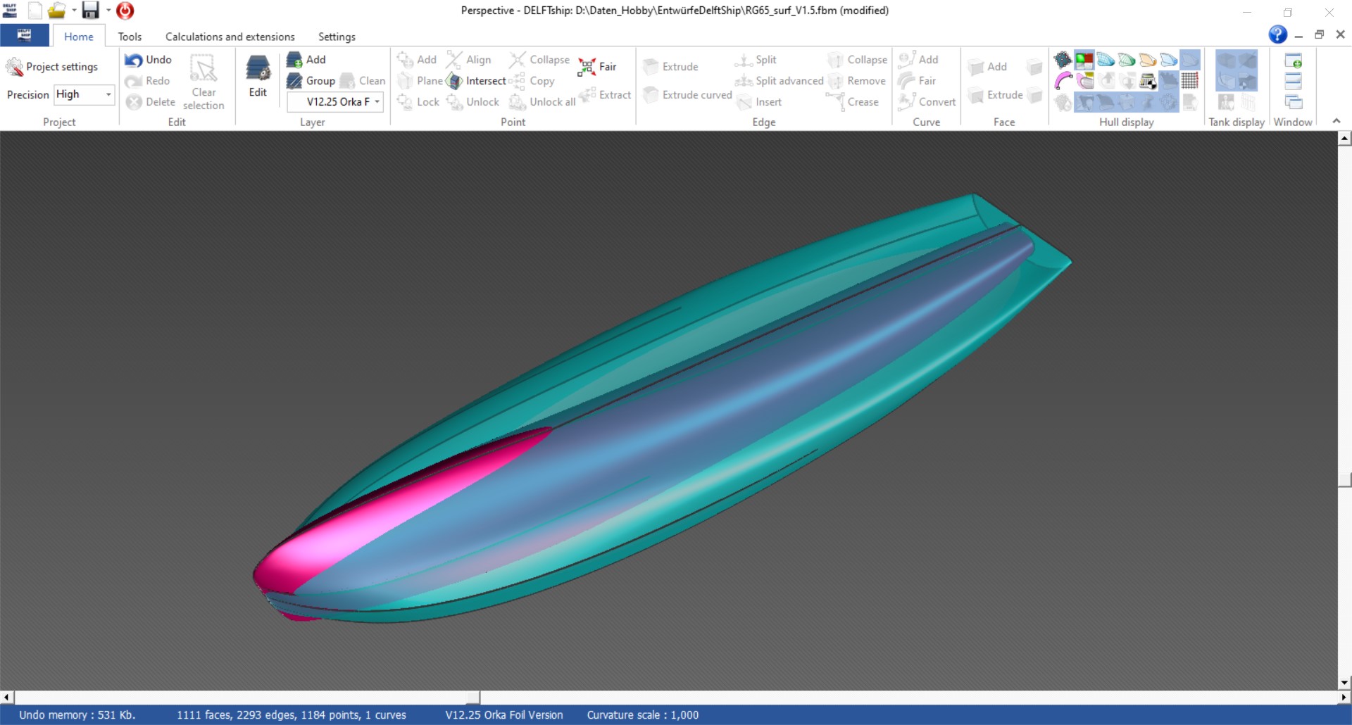 Man kann aus nur einer Spantvorlage durch Skalierungsoptionen einen "glatten" und veränderbaren Rumpf machen (eher aus theoretischem und spielerischem Interesse). Das Auge isst mit.
