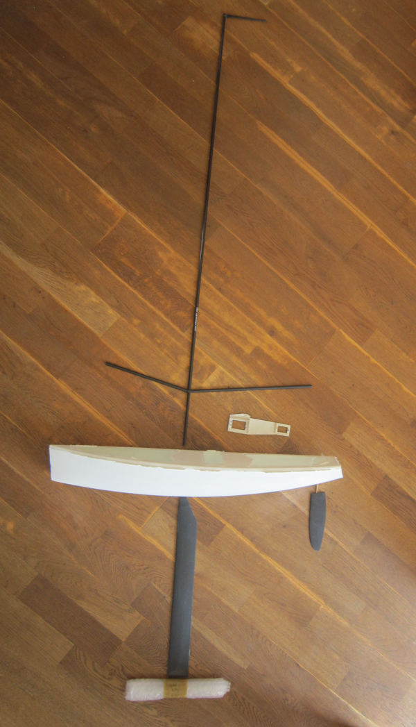Der Rumpf kommt so wie auf dem Foto zu sehen ist aus der Form. Das Gewicht beträgt nach entfernen allen überflüssigen Materials ca. 100g. Das ist nicht rekordverdächtig aber dafür müssen keine langwierigen Vorarbeiten für eine Lackierung gemacht werden. Wenn die Oberfläche nicht 100% sein muss reicht es aus nur den Nahtbereich zu schleifen und zu lackieren oder ein schmales Tape über die Naht zu kleben.