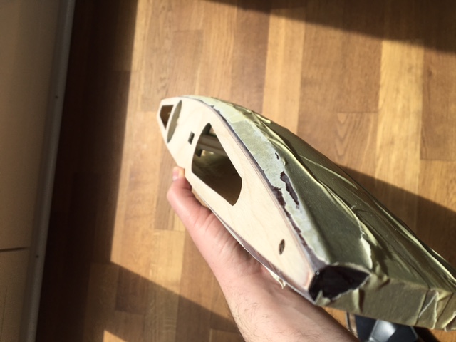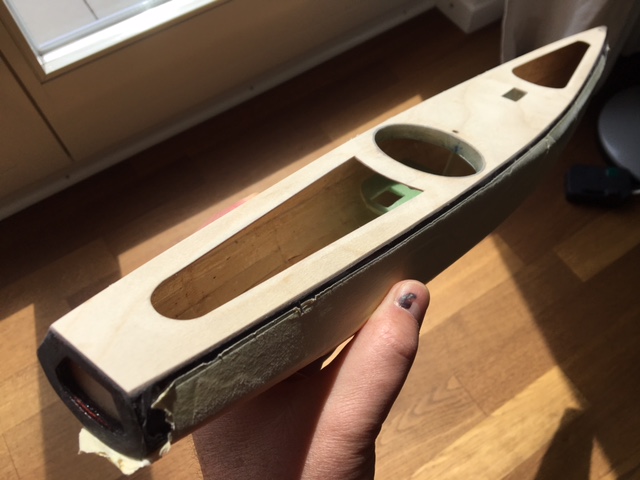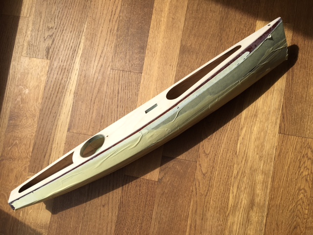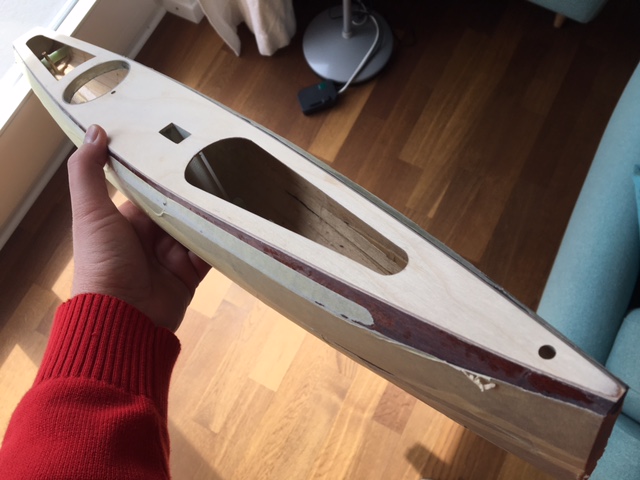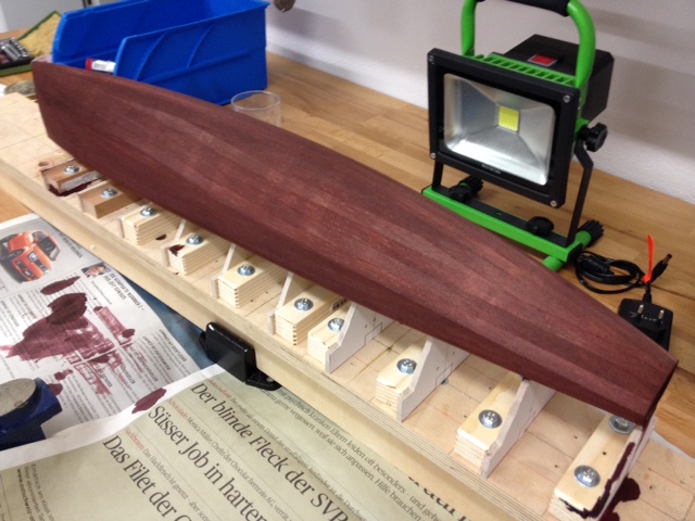 Es geht vorwärts. Das Deck ist drauf und jetzt beginnt die Schleiferei. Zuerst kommt nun einmal Lack auf das Sperrholzdeck und dann wird nass geschliffen.