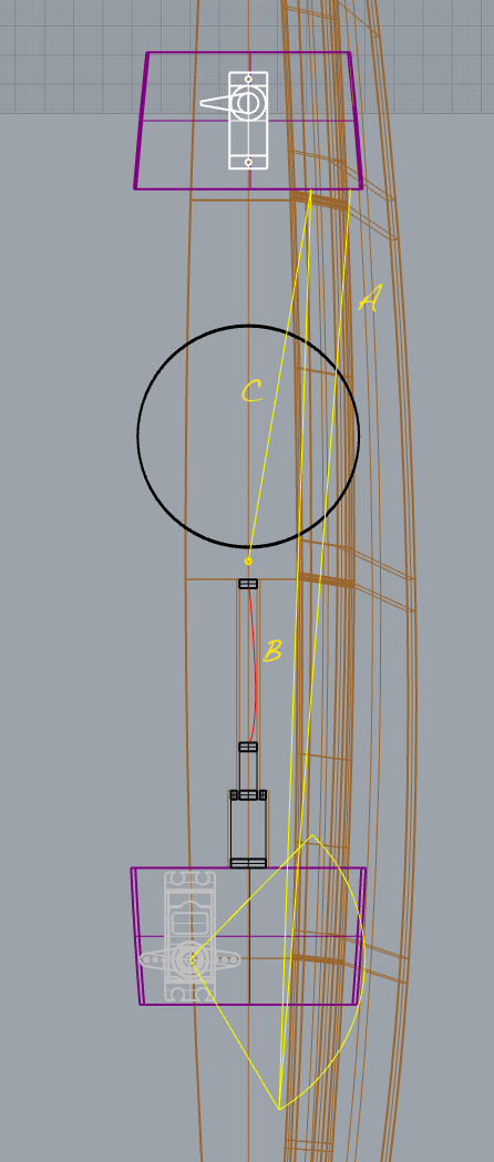 B: läuft vom Servoarm zurück ins Heck zum Umlenkpunkt X;