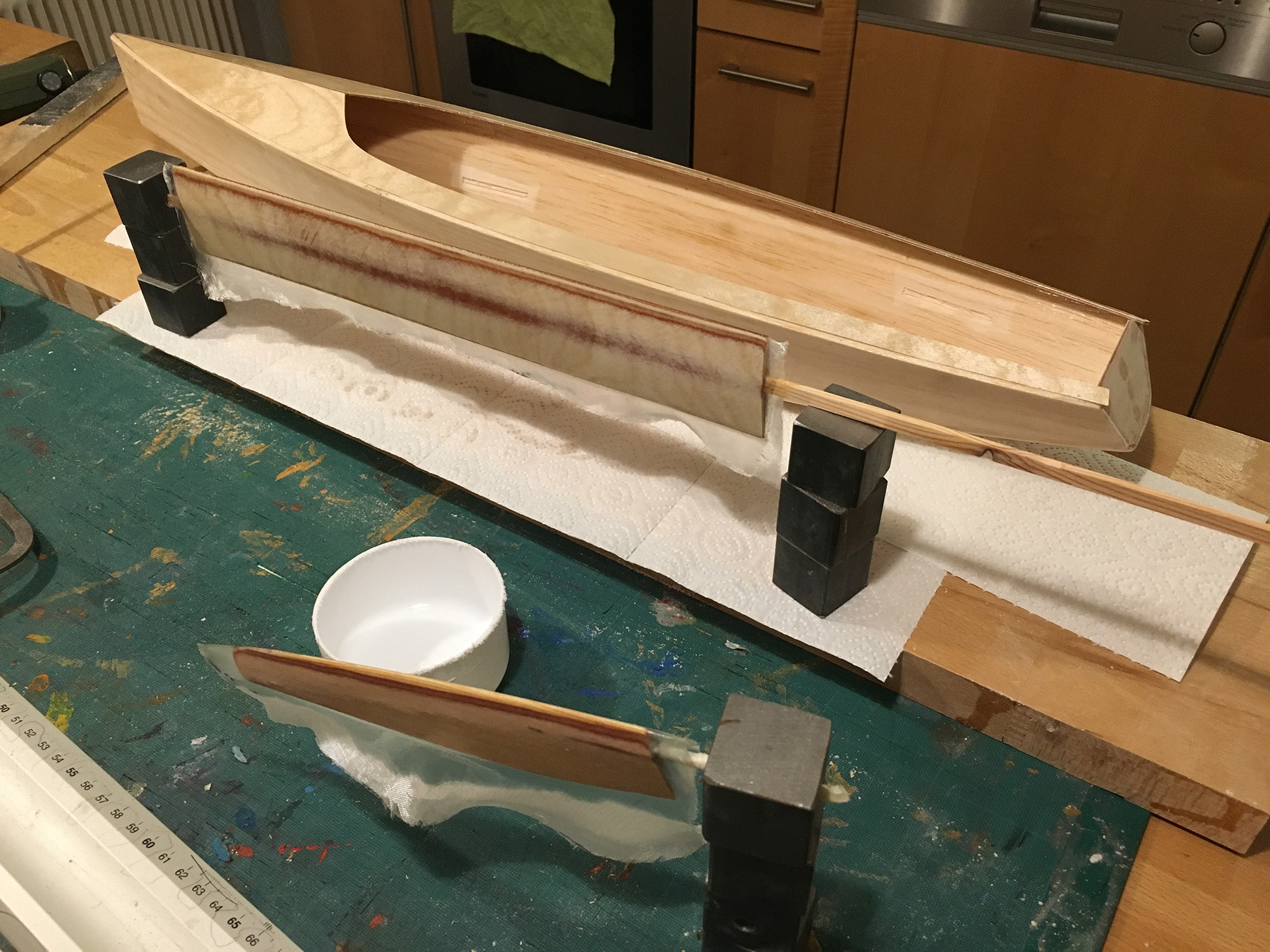 Es geht weiter. Die Form der Finne sowie die Kiel Tiefe habe ich dem NeKst Round Bauplan entnommen.