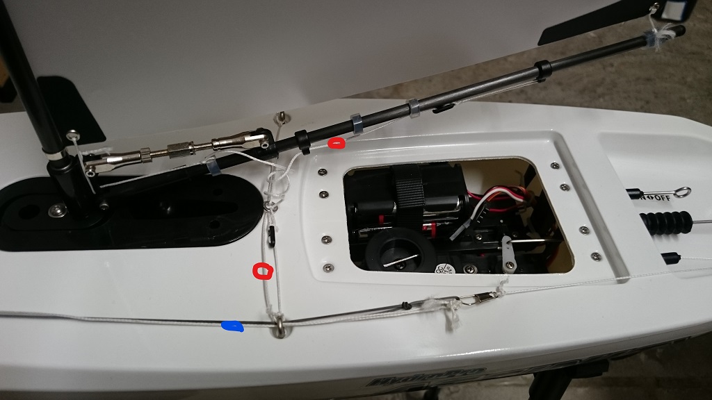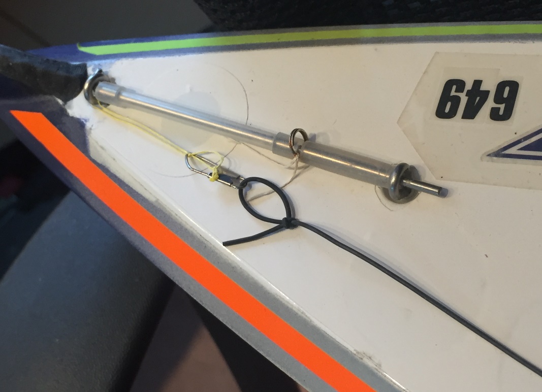 Hallo Marc, ich kenne "nur" die DF 65, hier ist ein Segelwechsel ja von vornherein geplant. Daher sollten alle Segelpunkte lösbar sein, daß Mast, Bäume und Schoten am Schiff bleiben. Wichtig ist dabei, dass alle Punkte, wo Knoten die Seile halten, nicht geknotet werden, sondern, dass dort Haken zum Einsatz kommen: Aufhängung der Fock am Mast, Befestigung der Fock vorne am Fockbaum ( bei der DF kann man das Kontergewicht herausziehen und damit die Fock lösen ), die Fock am Ende des Baumes wird von einem Haken gehalten, die Dirk bekommt entweder oben oder unten einen Haken = lösen können. Beim Groß habe ich den Segelkopf über eine kleine Talje an der Fockaufhängung befestigt, damit gibt es Platz für einen Haken. Unten muß der Haken an das Cunningham geknotet werden, das Schothorn wird bereits durch einen Haken gehalten. Also kannst Du damit das Segel abnehmen und tauschen.