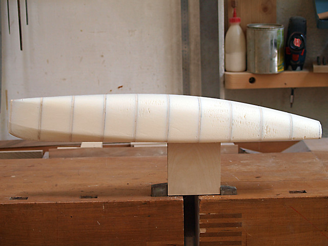 So, die Styroporklötze sind jetzt fertig geschliffen. Leider hatte ich nicht mehr genug Harz um den Rumpf gleich zu laminieren.