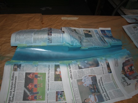 Glasmatte 160gr/m2 auf angeliertes Harz gedrückt und mit normalem Harz auflaminiert.