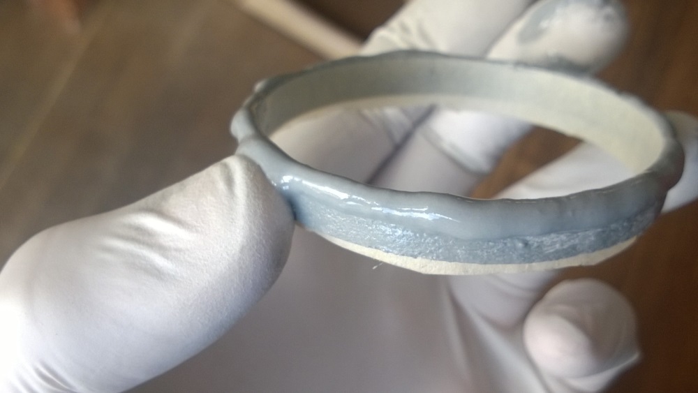 - Deckel mit Harz. Das Harz wird so eingestellt das es nur wenig runterläuft. Dann bleibt genug Harz am Ring und verbindet sich dank der Schwerkraft mit dem Deck.