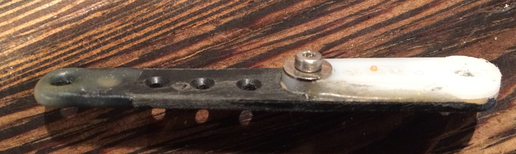 das ist ein einfaches Carbon Rohr in das ich oben und unten eine kleine Öse eingeklebt habe. Dazu verwende ich die Messingteile welche bei den Servos als Montagehilfe beigelegt werden.