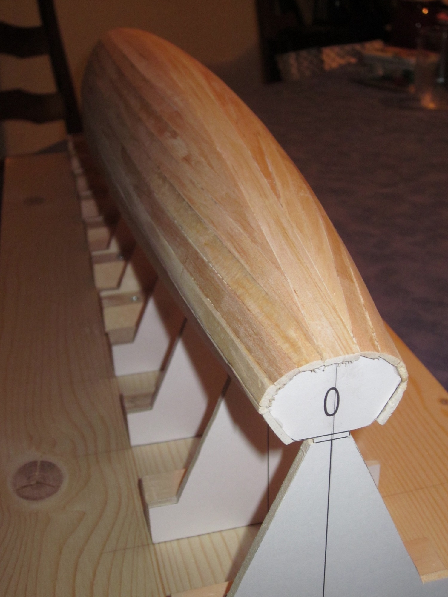 Das Schiff wird dann etwas flacher, die Spanten sind ja für 2mm Balsa gezeichnet. Der eine Millimeter macht aber nix...