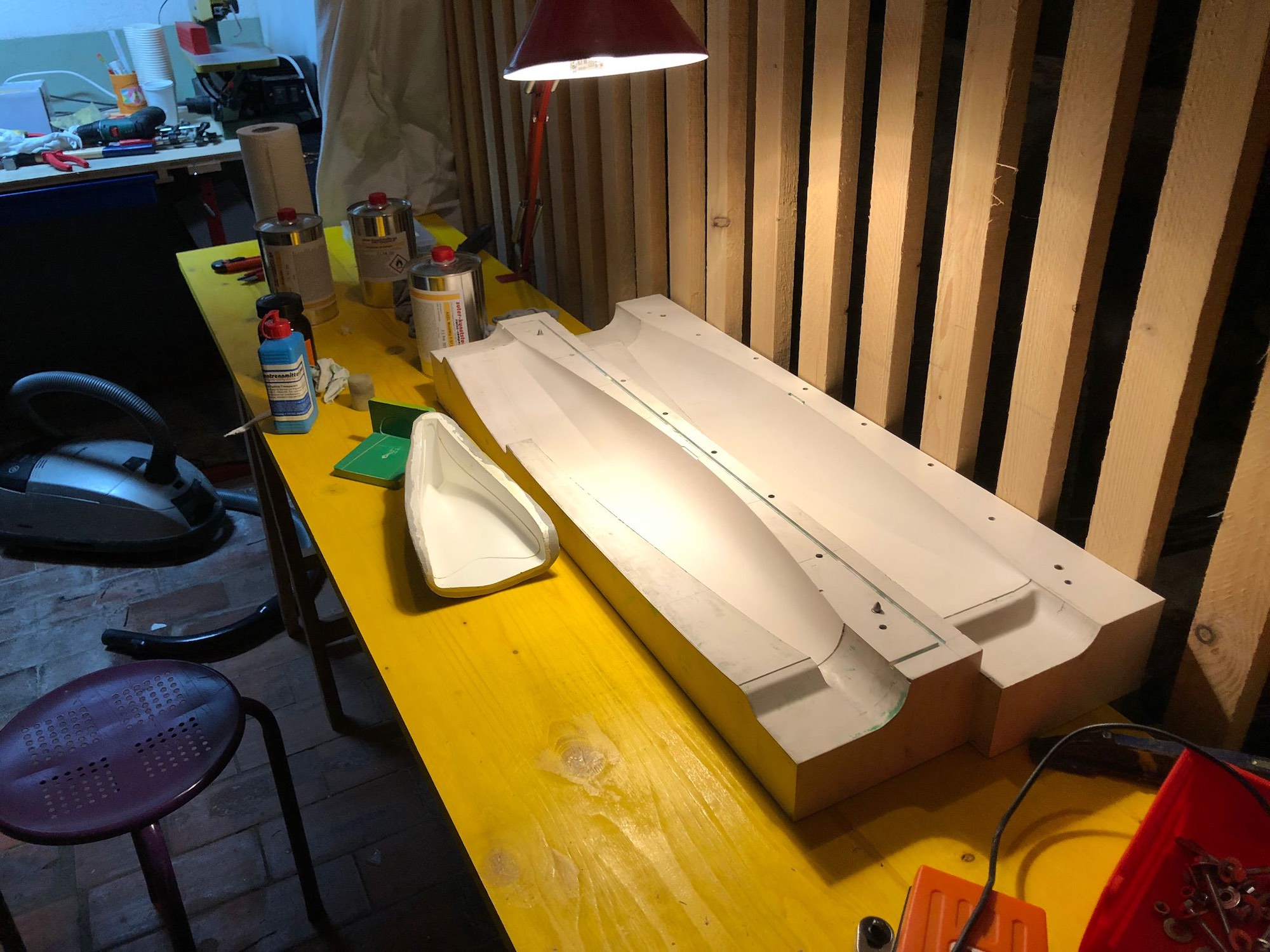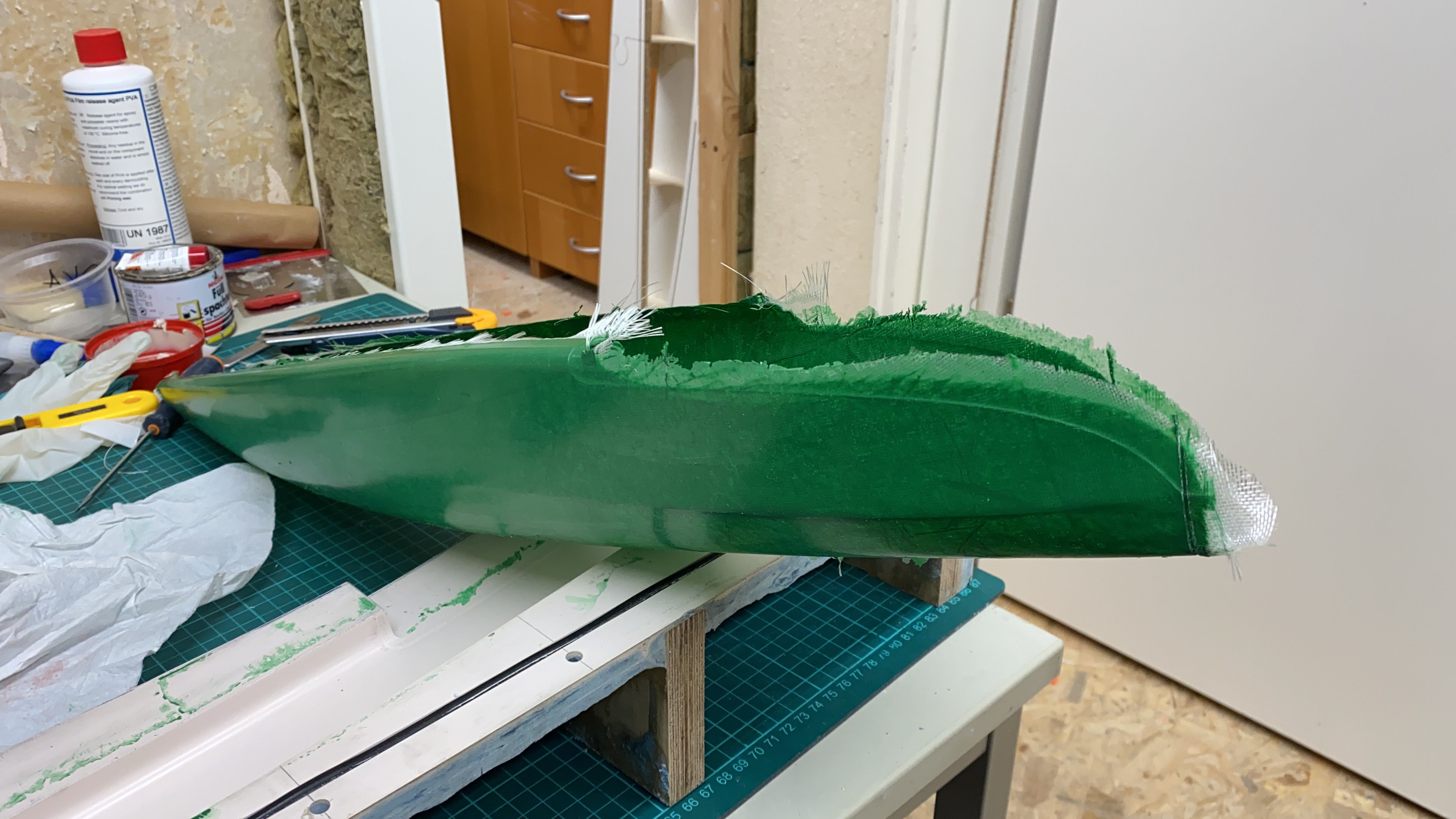 Weil der erste so in die Hose gegangen ist, habe ich den 2. Rumpf in Handlaminat hergestellt.