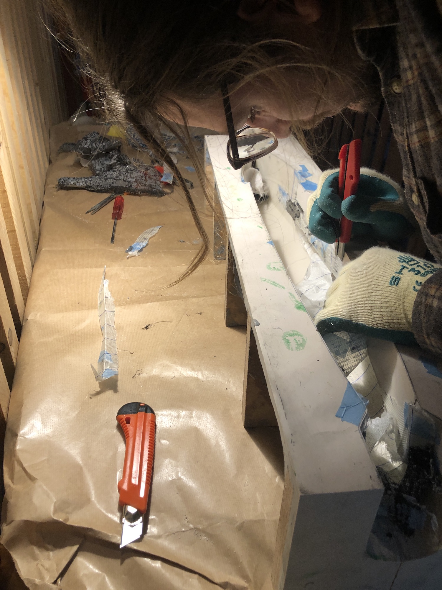 Folie wird aufgebracht - man beachte die bewusst gemachten Falten
