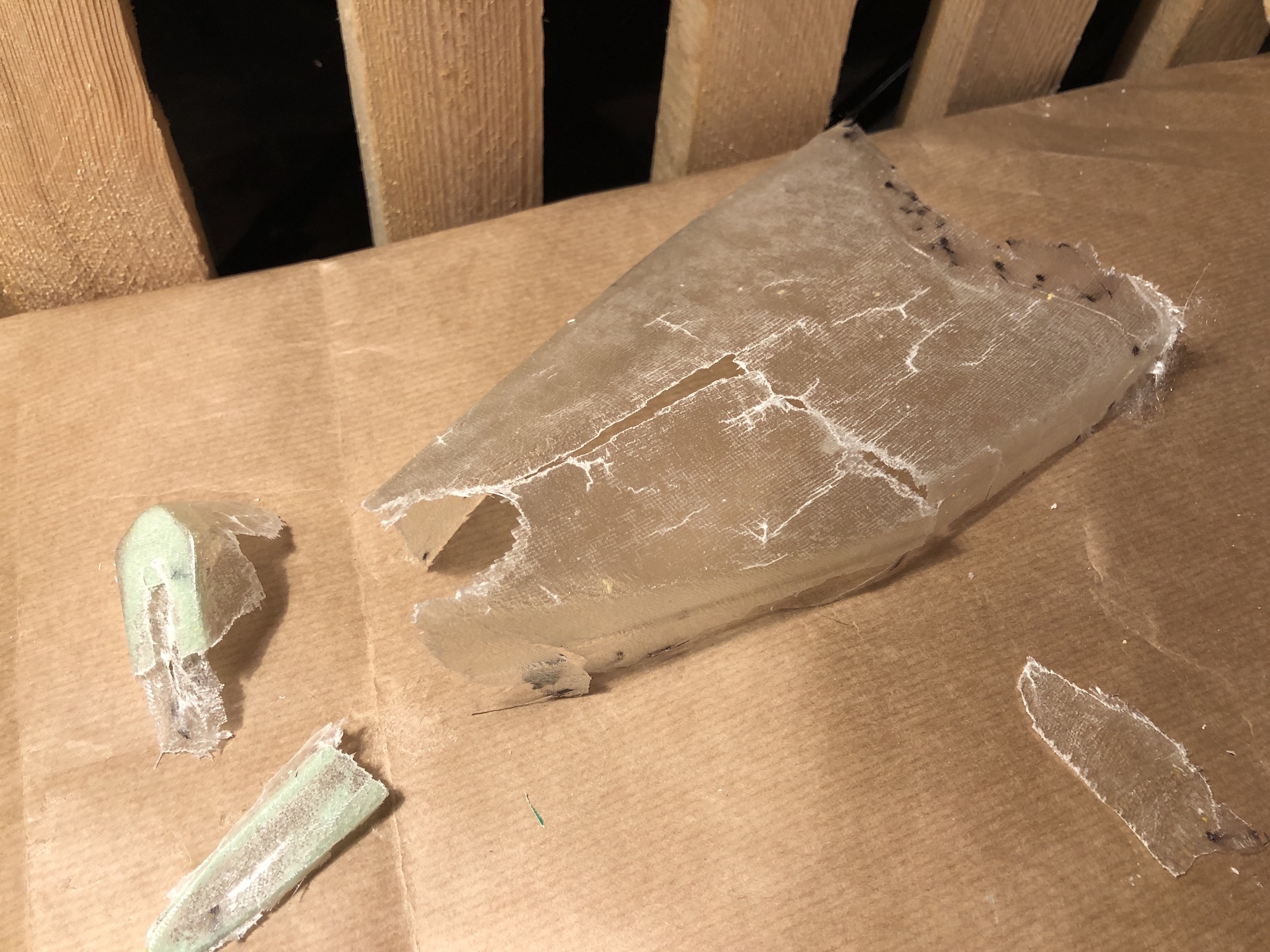 Auch die Bughaube war ein Misserfolg. Sie lässt sich nur mit Gewalt und Zerstörung aus der Form bringen, da das Airexplättchen am Bug zu fest in der Form hält...