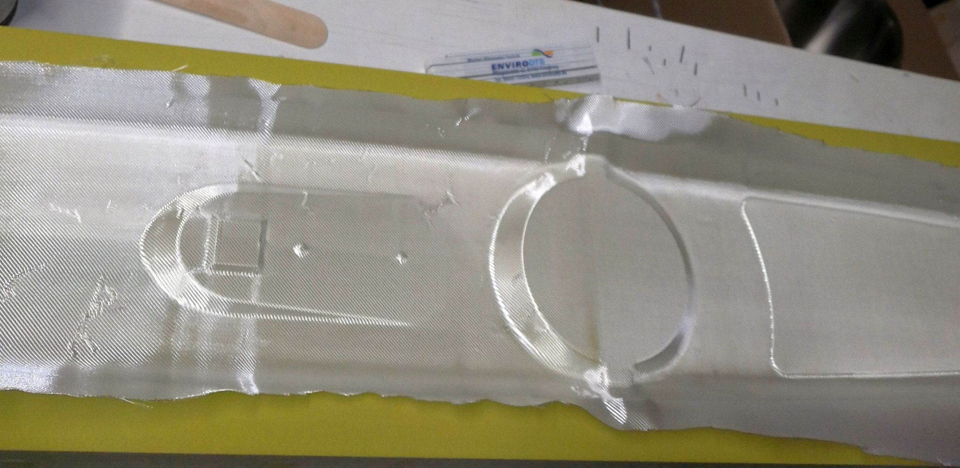 • Flowmesh und Abreissgewebe entfernen ist sehr mühsam und langwierig. Das ist nicht für unsere dünne Laminate gedacht. Als Verbesserung werden wir ein kombiniertes Abreissgewebe und Flowmesh (Compoflex RF3) testen. Hoffentlich benötigt das weniger Kraft...