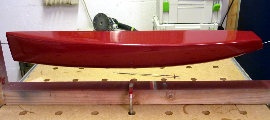 Nein, dazwischen stecken mehrere Stunden Arbeit vor der ich richtigen Bammel hatte. Ursprünglich dachte ich das die Sache mit 2k Lackieren erledigt ist. Beim Lackieren entsteht zwar Hochglanz, die Oberfläche selber ist aber leicht wellig, der Lackierer nennt das auch Orangenhaut. Nach einigen Recherchen (auch hier helfen weider die Modellflieger, teilweise musste ich mich zum recherchieren aber auch in die Abgründe von Autoforen begeben... :motz:) habe ich rausgefunden das das zwar je nach Lackierkunst mal mehr oder weniger ist aber wohl nie ganz vermieden werden kann. Dummerweise ist sowas beim Abformen schlimmer als kleine Kratzer oder eine nicht ganz glänzende Oberfläche.