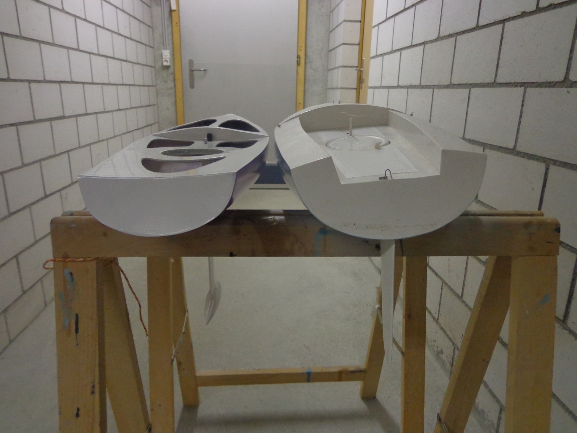 Danke für die Blumen! Es ist ein Eigenbau, die bisherige Entwicklung gibt es unter Pläne, Boote und Projekte unter den Titel "Rg65, fast nach Originalrissen". Denselben Plan habe ich nun etwas gedrückt und gepresst. Das heisst, Höhe und Breite nach Augenmass verringert. Die beiden Rumpfvarianten im Vergleich. Dazu der "Laminieruntergrund".