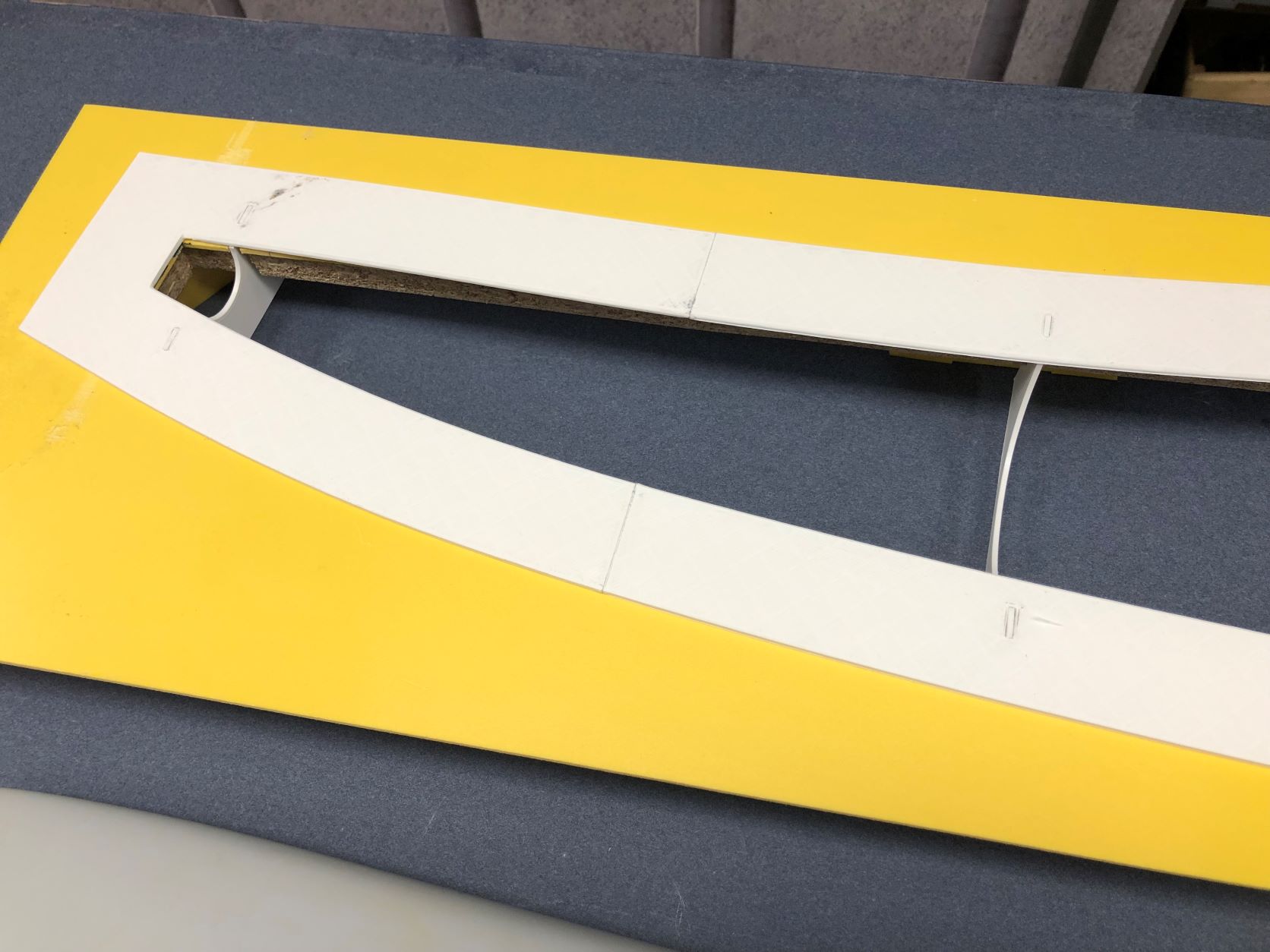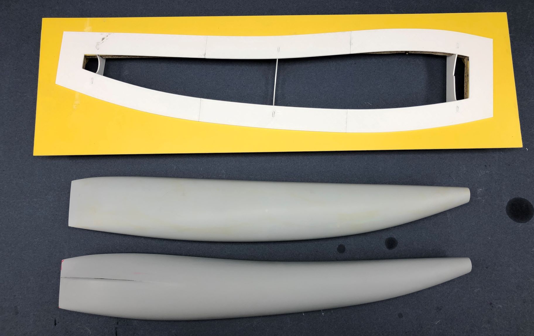 - anpassen von Finne und Ruder an die Rumpfkontur bzw. die Kieltasche