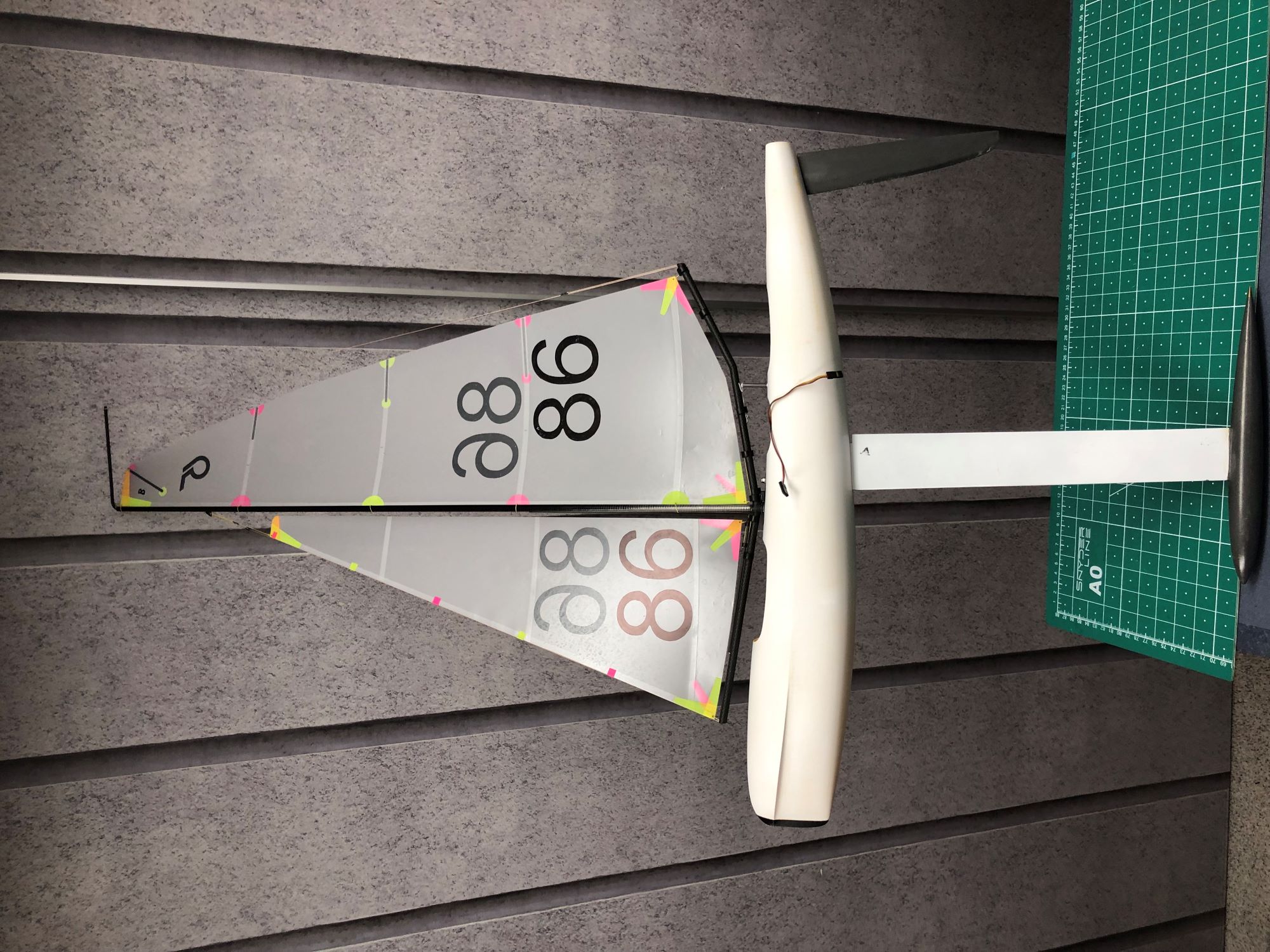 Gewichtsmäßig kommt man zwar nicht ganz an eine laminierte Version ran, aber die 20-30g mehr sind, wie ich die letzten Jahre feststellen konnte, nicht wirklich relevant. Segelfertig mit B-Rigg und 750g Kielgewicht ist die erste MK III mit 1030g Gesamtgewicht aber gut mit dabei.