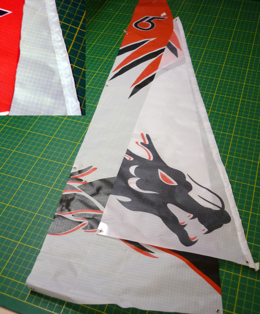 An der Dragon Force sind nur die Segel gegen Foliensegel getauscht, der Umriss/Fläche wurde gegenüber den originalen Segeln nicht verändert, alles andere am Boot ist unverändert.