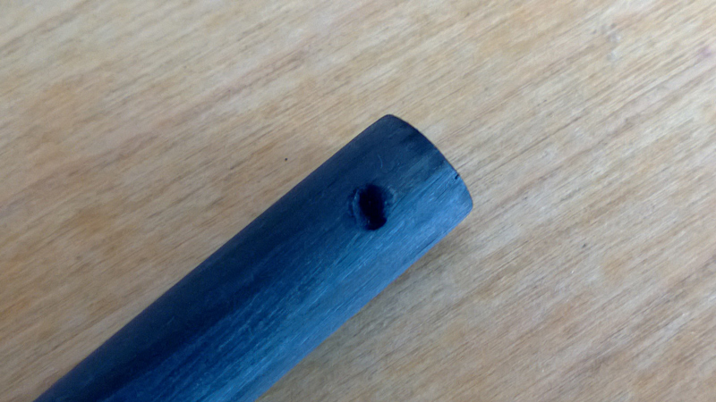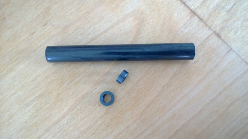 um die Lager im CFK-Rohr festzukleben bohre ich auf Höhe der Lager 4 mm Löcher, stecke die Lager in das Rohr und verklebe die Lager von außen. Das überstehende Material wird, nach dem der Kleber durchgehärtet ist, abgeschliffen.