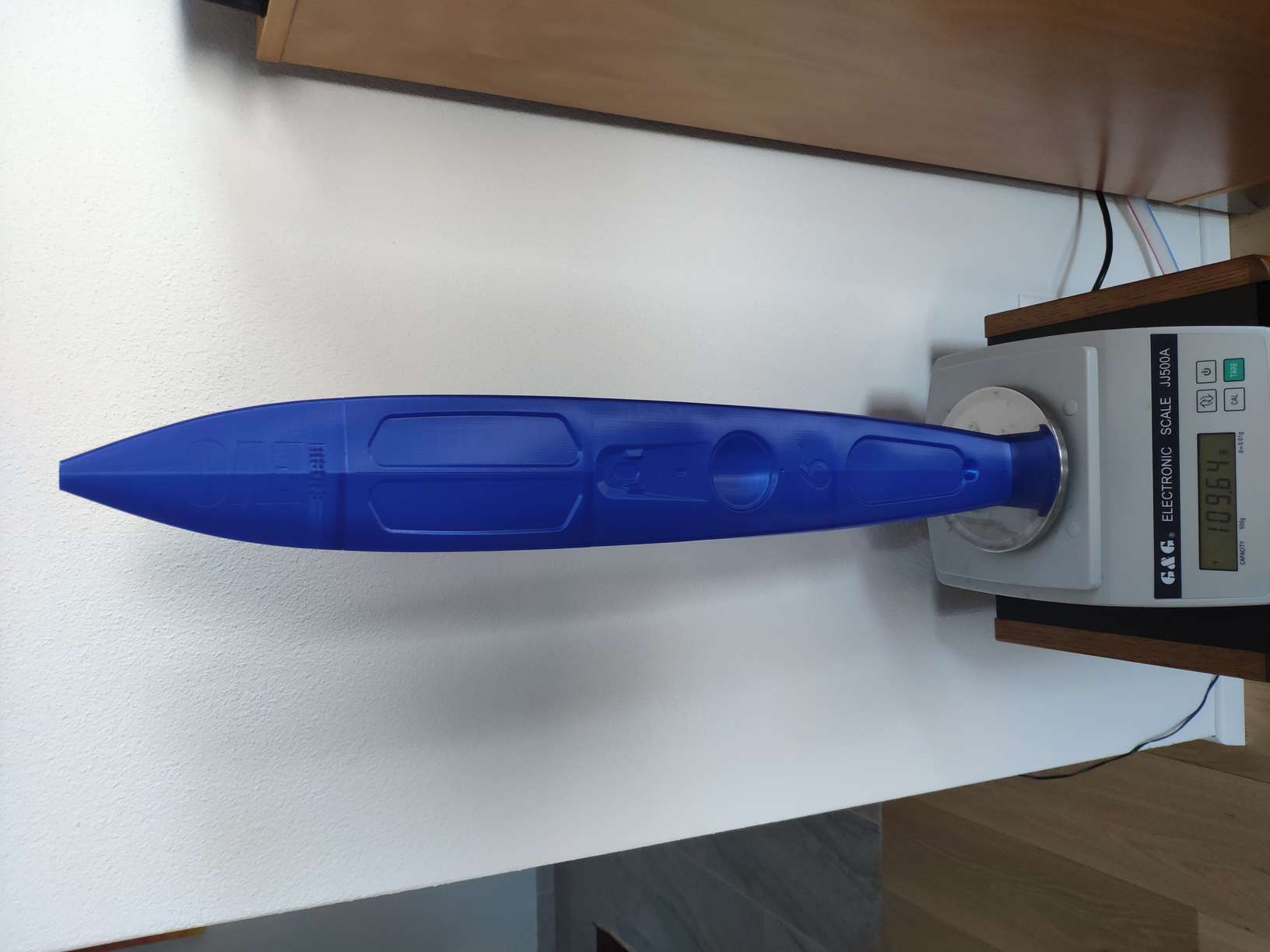 Das rote Bugsegment habe ich mit NX2 von Extrudr gedruckt. Das Zeug zaubert eine geradezu geniale Oberfläche bei fast gleichen Eigenschaften, wie das Redline-PLA. Man glaubt kaum, dass die rote Spitze in einem Plattenschubser entstand