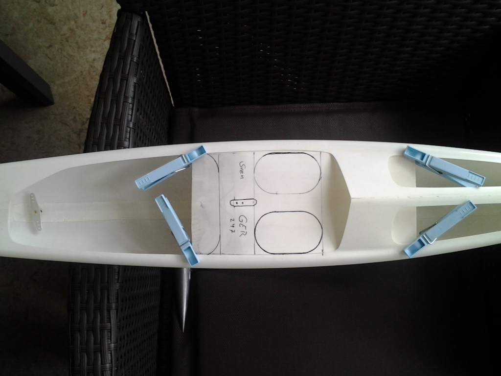 Da das Oberdeck inkl. aller Ausfräsungen aus Carbon gefertigt wird, Ausfräsung für Swing Rigg und Schwertbefestigung inkl. , muss vorher alles ganz exakt angepast werden.