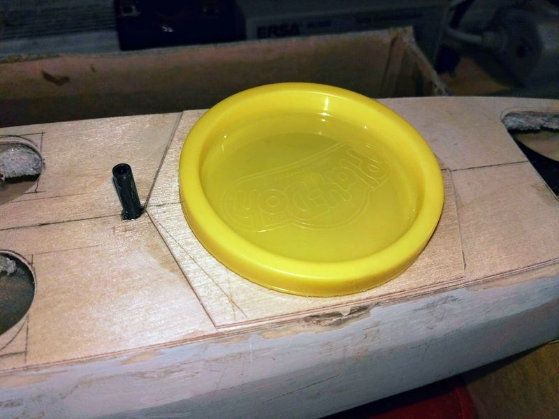 Mir gefällt dieser Wannendeckel auch nicht so gut. Ich habe dir doch gestern den kleinen Deckel mit der Aludose gezeigt. Aluminium und Holz verklebt sich mit Endfest bestens.