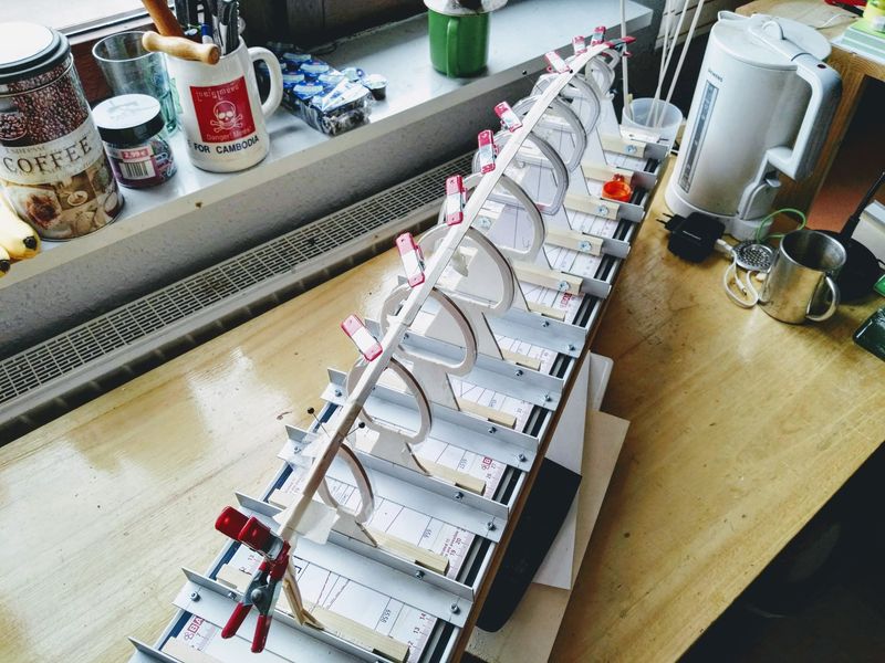 Probleme gabs nicht wirklich, nur zum Spant 10 hin mussten die Planken schon sehr verdreht werden.