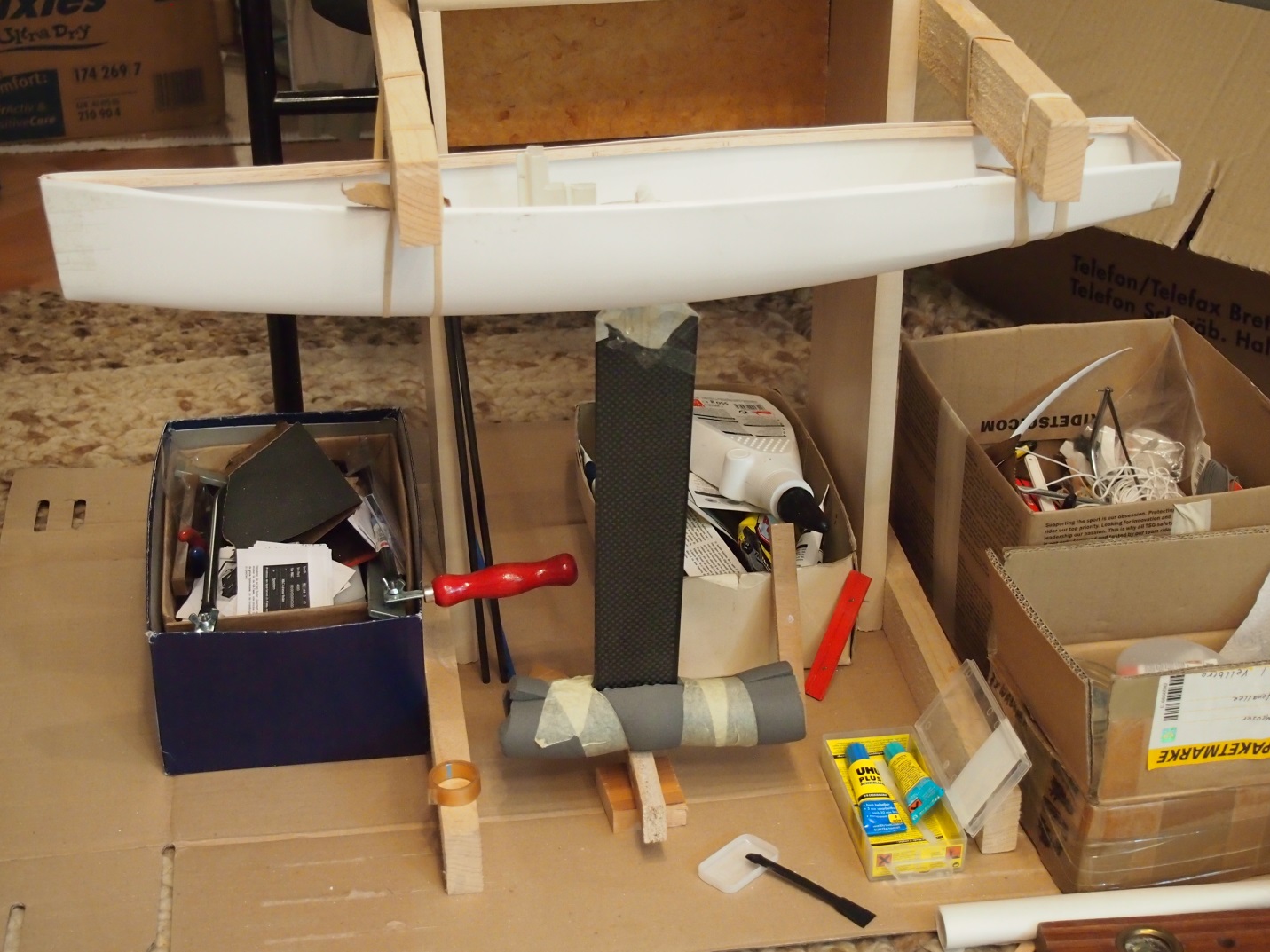 Werde dann wohl an den Resten ein paar Klebeversuche machen, bevor ich Hand an den Rumpf lege.