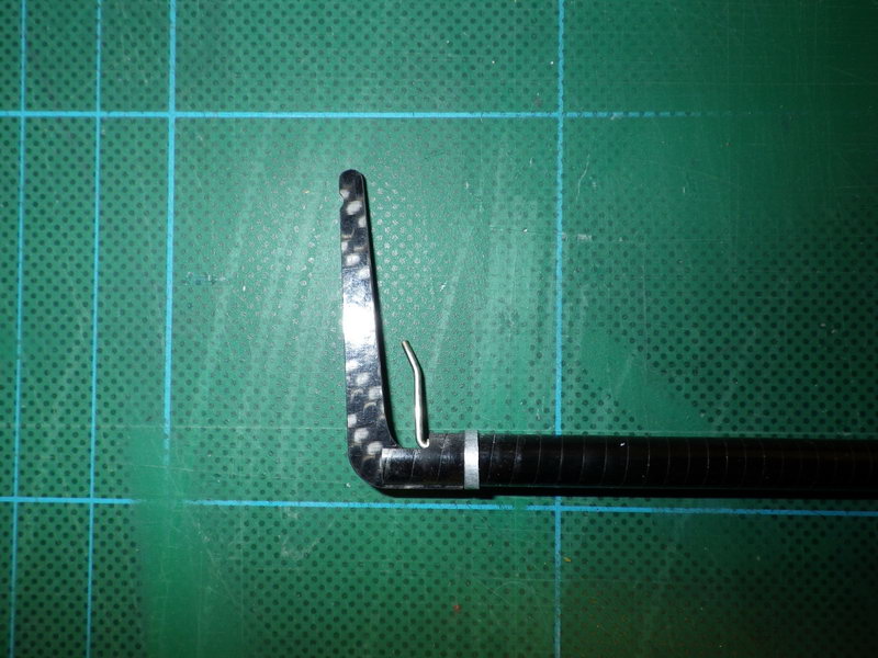 Bei der Fock hatte ich noch ein kleines Problem zu lösen, denn ich fahre gerne die Bäume knapp über dem Deck. Für das hatte ich beim Bau ein GFK-Röhrchen zum Rumpfboden eingebaut, um die Fockaufhängung zu realisieren. Damals dachte ich jedoch nicht daran, dass die Fock beim Ausschwenken am flachen Deck ansteht. Deshalb habe ich nun den Fockbaum mit einem Knick ausgeführt. Was meint Ihr dazu?