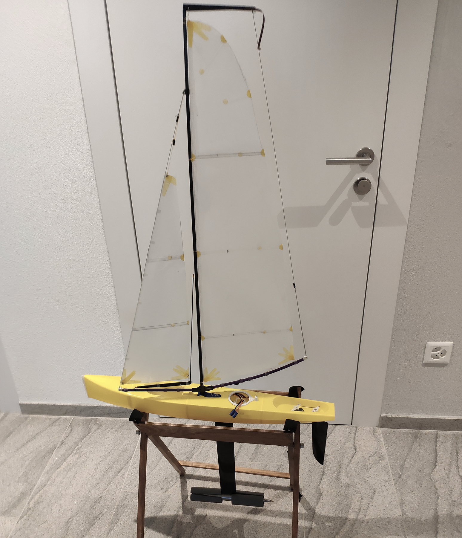 Habe großes Glück gehabt.Nach einigen Steckern hat sich der gedruckte Zugangsdeckel verabschiedet.Wurde aber erst bemerkt,als ich das Boot zur Trimmänderung an Land geholt habe.Ein Bierglas (0,3 L ) Wasser war schon im Rumpf.Eine weitere Runde und das Boot würde auf dem Grund des Teiches liegen.Damit hat sich der gedruckte Deckel erledigt,demnächst Papprollendeckel.