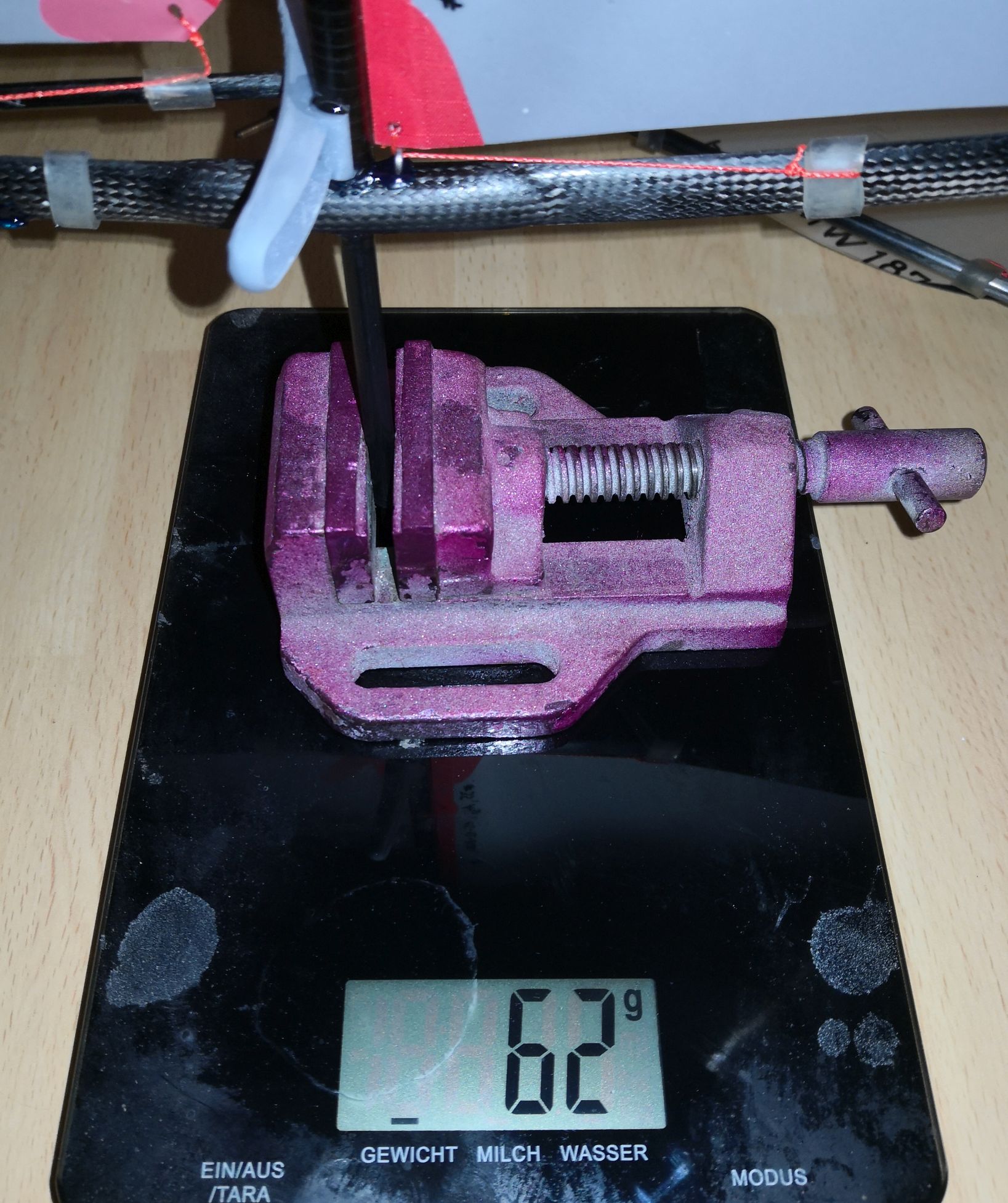 Habe grad mal die Alu-Pfeilschäfte auf die Waage gelegt. Komplett mit einem gedruckten Mastkreuz kommt man auf etwa 15g für die komplette Länge eines A-Riggs.