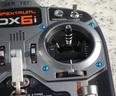 Der DX8 KK hat für eine Funktion die Auswahl zwischen neutralisierender Feder, Reibung und Ratsche. Eine Justierung durch eingefügte Löcher im Boden der DX6i ist auch möglich. Bei meiner DX6i wollte ich aber nur die Ratschenfunktion und habe diese bei geöffneten Sender (es müssen nur 6 Schrauben enfernt werden) eingestellt.