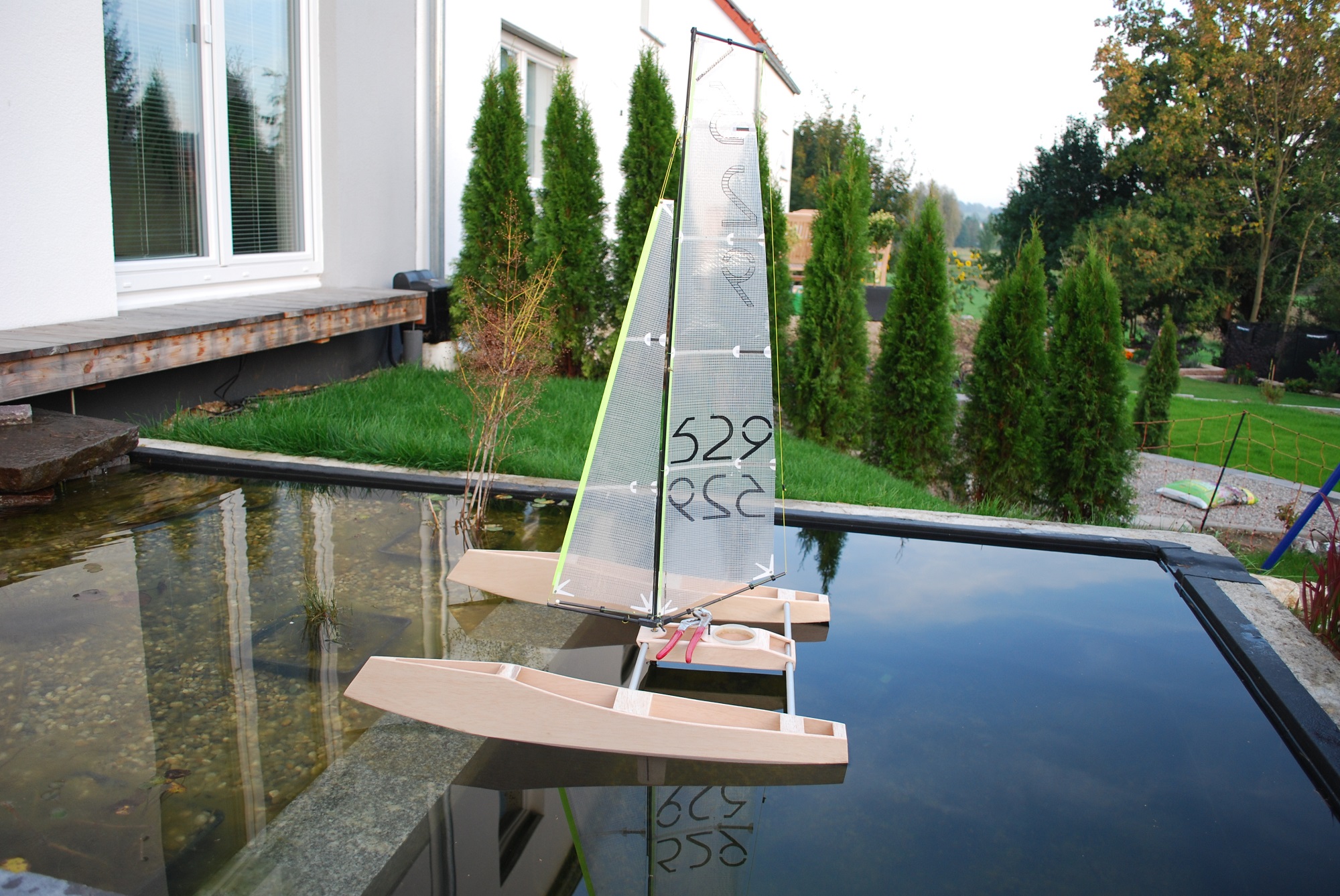 Es ist alles 2mal mit Klarlack auf Wasserbasis lackiert. Jetzt kommen nochmal 1 bis 2 Schichten vom richtigen Bootslack drauf.